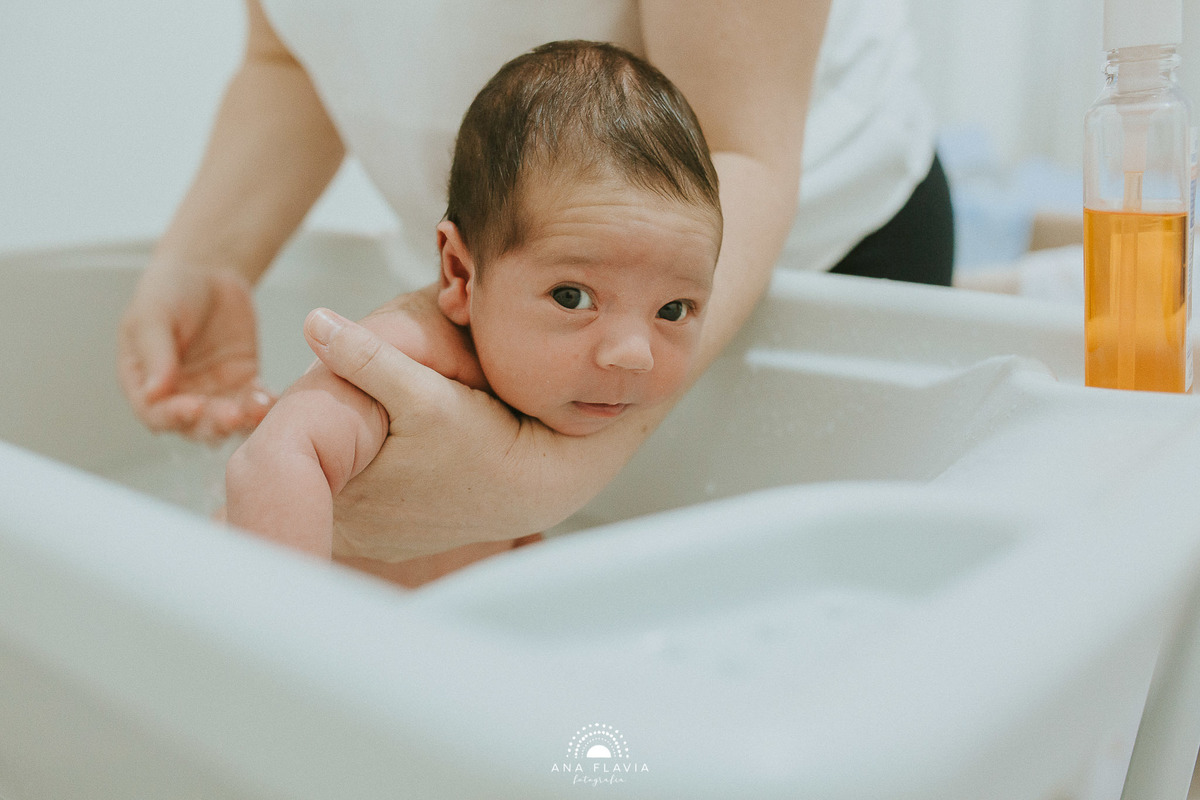 Ainda tem o aconchego do banho quentinho e dos presentes da vovó. A representação de família é forte e valiosa por aqui, Davi posa no seu bercinho que já pertenceu a outras gerações e agora está eternizado nessas imagens.